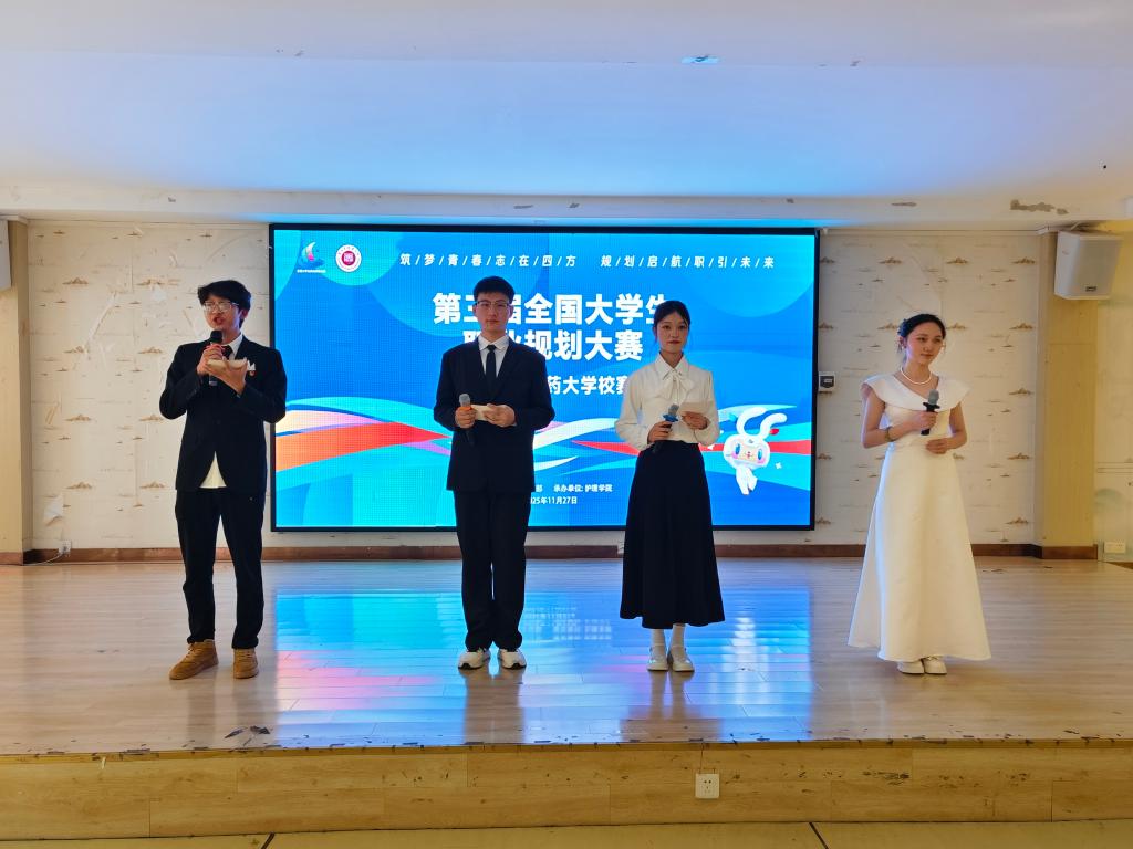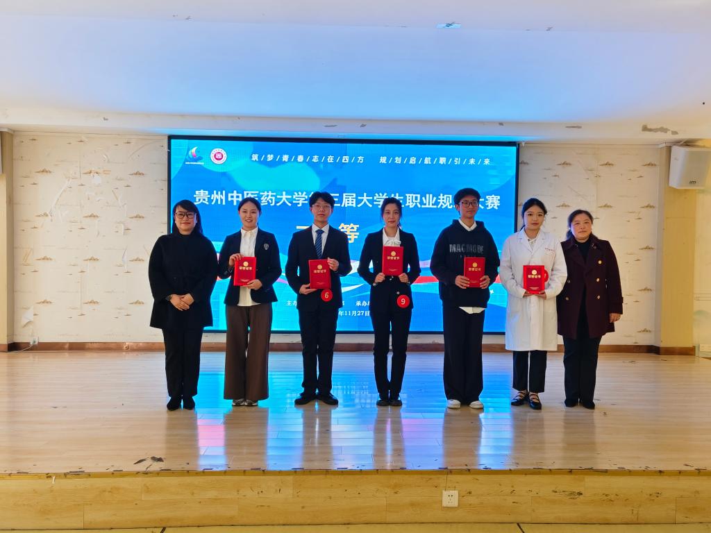 大赛特邀校内外行业精英、高校专家及优秀校友组建专业评审团。参赛选手或结合生涯发展报告系统阐述成长路径,或依托求职 PPT 直观展现职业准备,规划逻辑清晰。评委围绕规划可行性、路径科学性等关键问题精准提问、细致点评,为选手职业成长精准 “把脉”,赛事环节精彩纷呈,充分彰显贵中医学子扎实素养与出色能力。经激烈角逐,我集团学子斩获多项佳绩:刘嫣同学获成长赛道二等奖,李思曾同学获就业赛道二等奖,邓应点同学获就业赛道优秀奖。